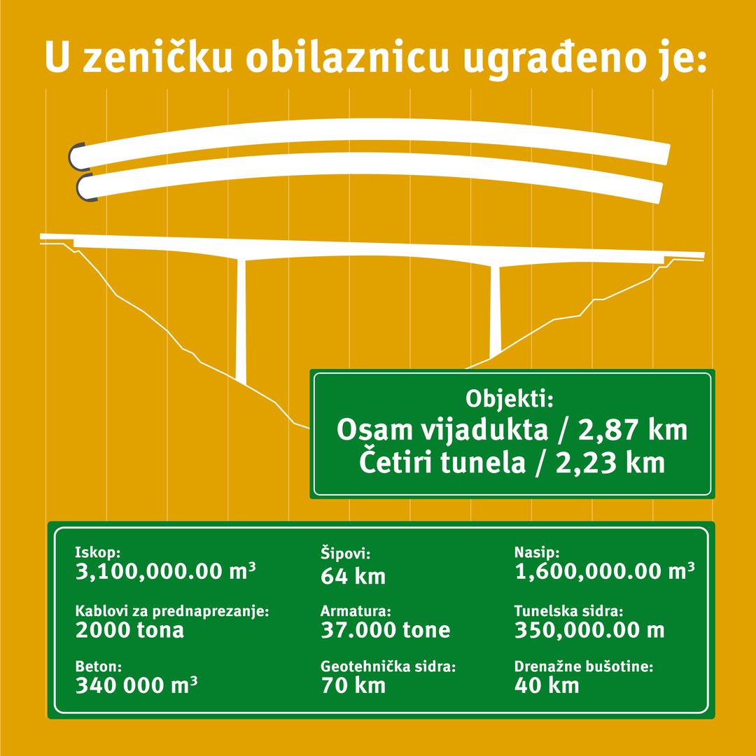 Izgradnjom Zeničke obilaznice povezani su Zenica sjever i Zenica jug na autoputu, priopćeno je iz JP Autoceste FBiH koji su objavili tehničke podatke za izgrađenu autocestu.