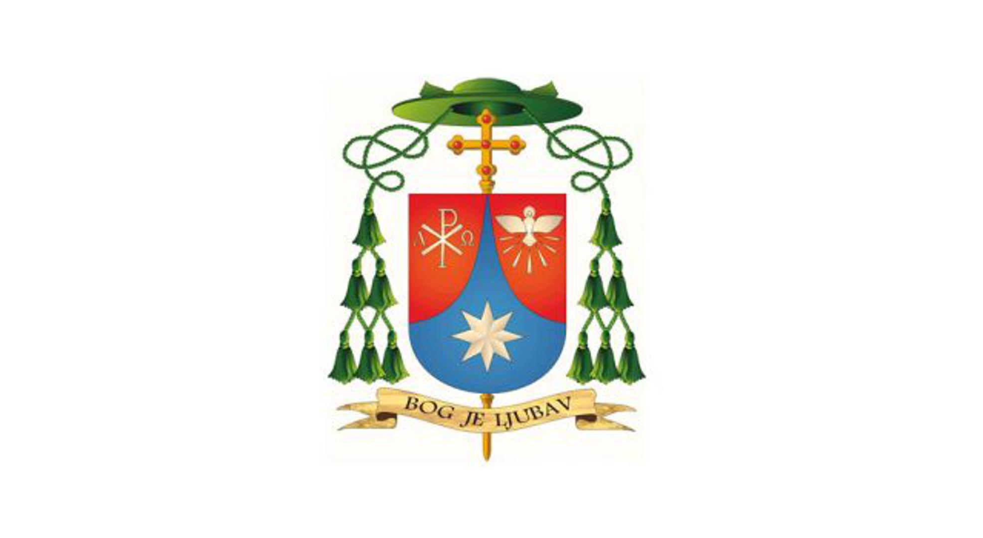 Na heraldički desnom crvenom zastoru nalazi se Kristogram ΧΡ između grčkih slova alfa i omega, koja označavaju Krista Božjega pomazanika. Na heraldički lijevom crvenom zastoru nalazi se golub sa sedam zraka, kao simbol Duha Svetoga i sedam njegovih darova koje biskup dijeli sakramentom svete krizme.