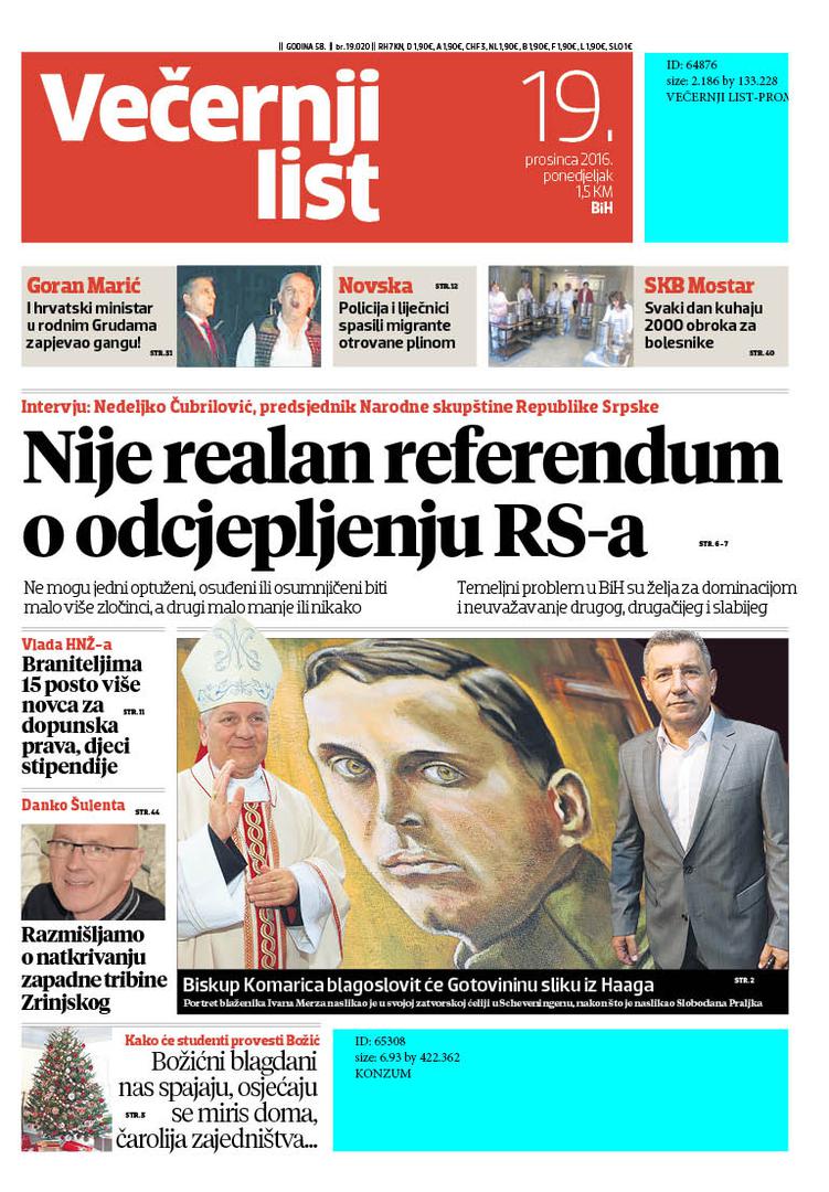 Pročitajte što vam ovoga ponedjeljka donosi Večernji list BiH