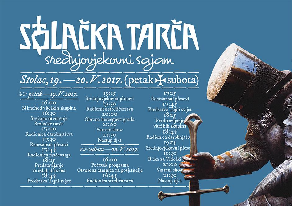 Svečano otvorenje Stolačke tarče bit će na Starom gradu u 16:30 sati. Za najmlađe zanimljivi program počinje već u 17:00 sati kada će Mak Teatar prikazati Radionicu čarobnjaštva. Za one koji neće moći biti prisutni u petak, ista radionica će se odviti i u subotu u 18:45 sati. Ove zanimljive iluzioniste imat će te priliku gledati i u 18:45 sati kada će izvesti predstavu Tajni svijet. Plesna skupina povijesnih plesova- Kontea u 17:30 u petak te u 17:15 u subotu uprizorit će Renesansne plesove. Za sve one koji žele nešto i naučiti na ovome sajmu bit će Radionica mačevanja u 17:45 sati koji će predvoditi škola za povijesno i scensko mačevanje Aureus Unicornis te Radionica streličarstva u 19:30 sati pod vodstvom Reda vitezova Ružice grada.