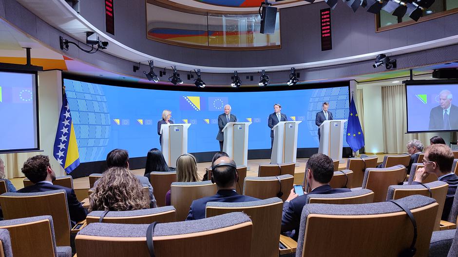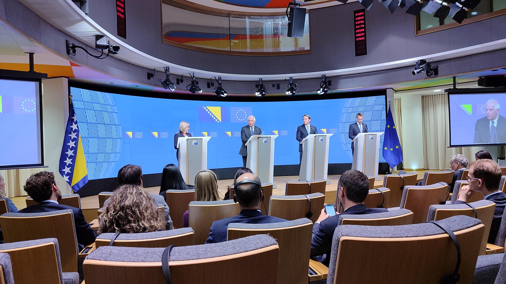 Predsjedateljica Vijeća ministara BiH Borjana Krišto zahvalila se Europskoj uniji na potpori Bosne i Hercegovine ističući kako je pred zemljom ispunjavanje 14 uvjeta kako bi otvorila pregovore s EU. Izrazila je očekivanje da bi zemlja krajem godine mogla otvoriti pregovore s EU.