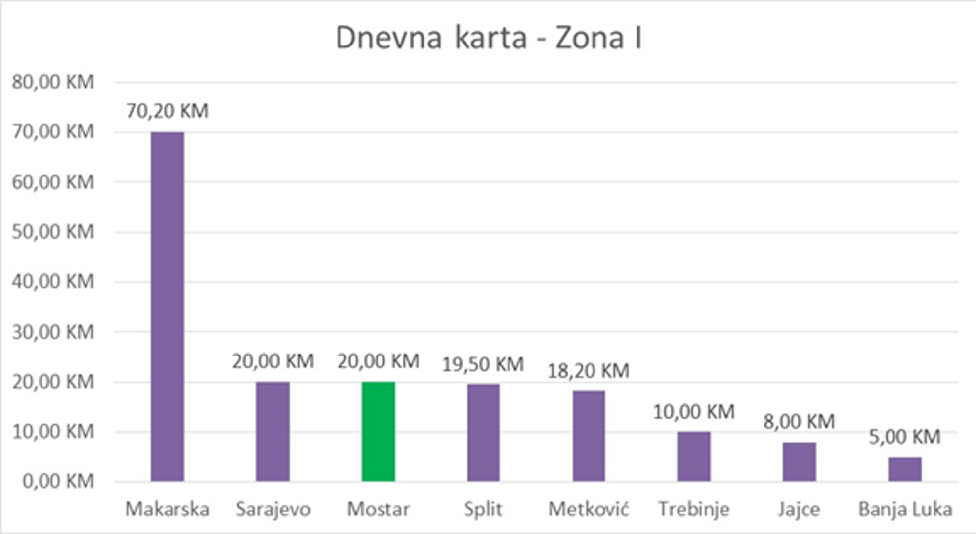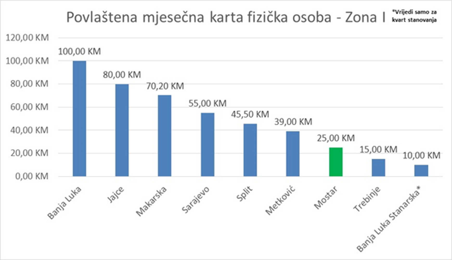 Usporedbom cijena parkinga u regiji vidljivo da je cijena parkinga za građane Mostara znatno jeftinija nego u ostalim gradovima u regiji, npr. Banja Luka, Trebinje, Sarajevo, Makarska, Split i dr.