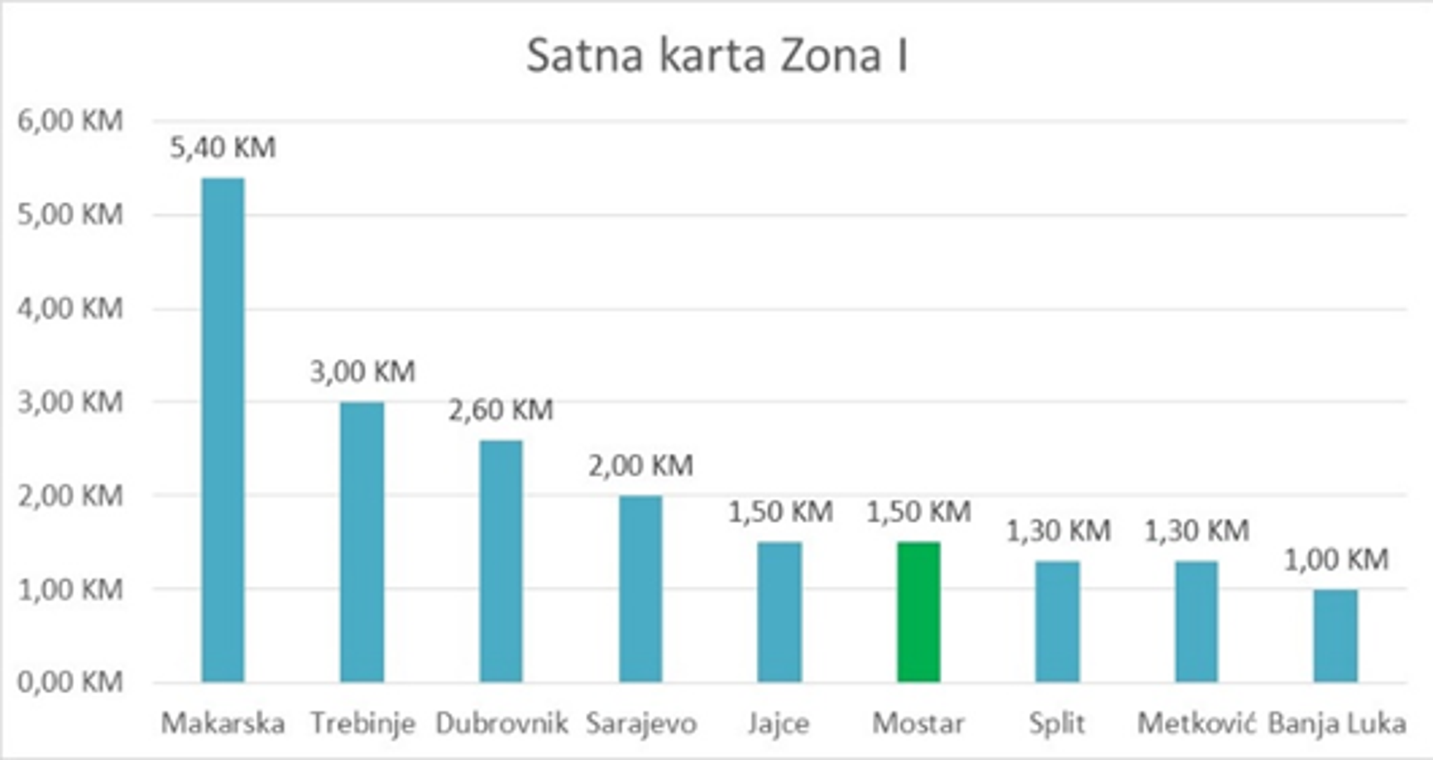 Cijena parkinga za građane Mostara je najjeftinija u regiji. I to za one građane koji se odluče kupiti mjesečnu ili godišnju kartu. Građanima koji imaju pravo kupit kartu samo u II. zoni omogućeno je parkiranje na 85% javnih površina u gradu predviđenih parkiranje.