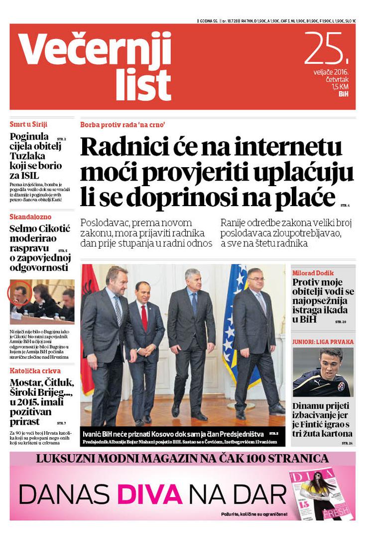 Pročitajte što vam ovoga ponedjeljka donosi Večernji list BiH
