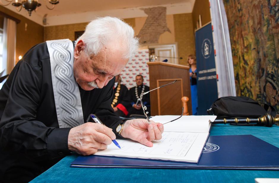 „Svima kojima dugujem zahvalnost: vi ste zaključili da sam svojim dosadašnjim književnim radom zaslužio počasni doktorat, a ja ću se truditi da do kraja života ostanem dostojan te časti“, naglasio je Aralica.
