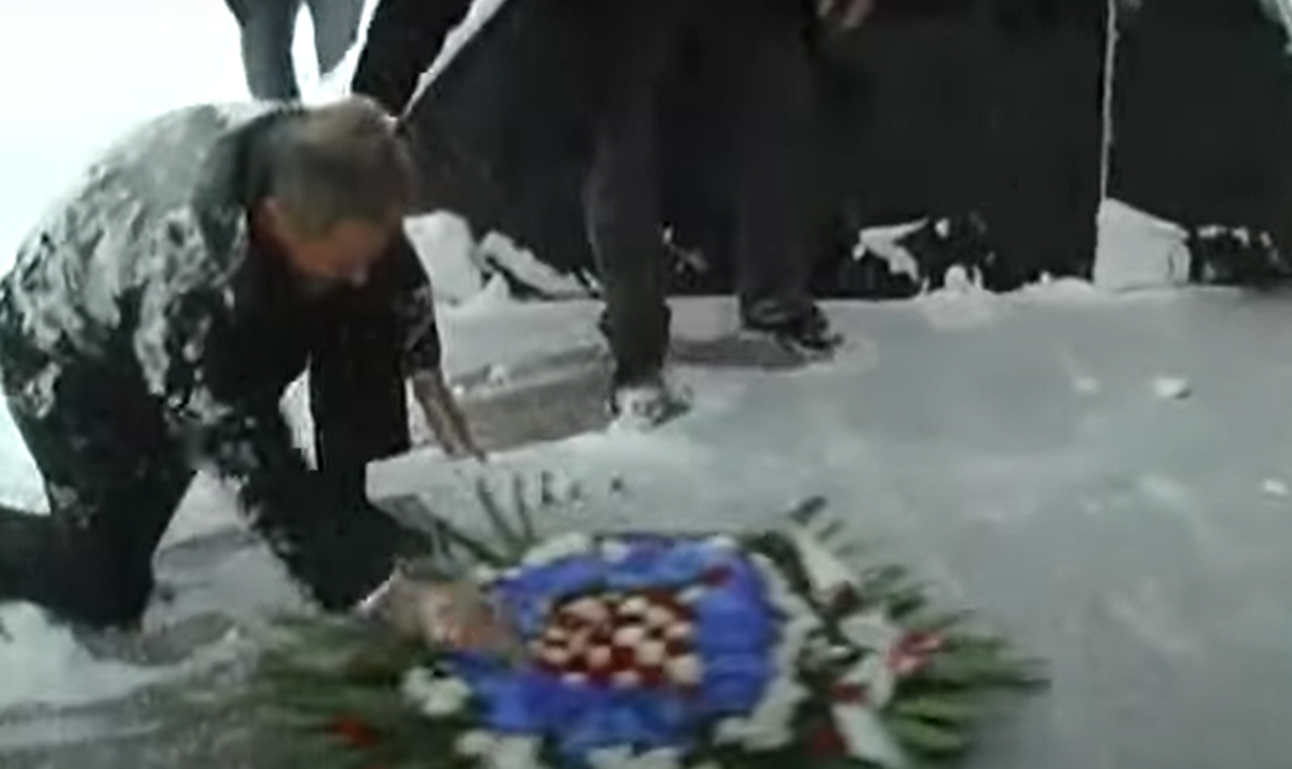 Slika treća: zagrebački gradonačelnik tijekom predsjedničke kampanje 2009. za posjeta Brčkom u BiH pokušava položiti vijenac poginulim borcima HVO-a. No mramorna ploča prekrivena je snijegom i skliska pa Bandić skida cipele, pokušava u čarapama, pada na stražnjicu, diže se i puzi. "Snimajte ovo, jedinstven i neponovljiv Milan Bandić", čuje se iz pratnje.