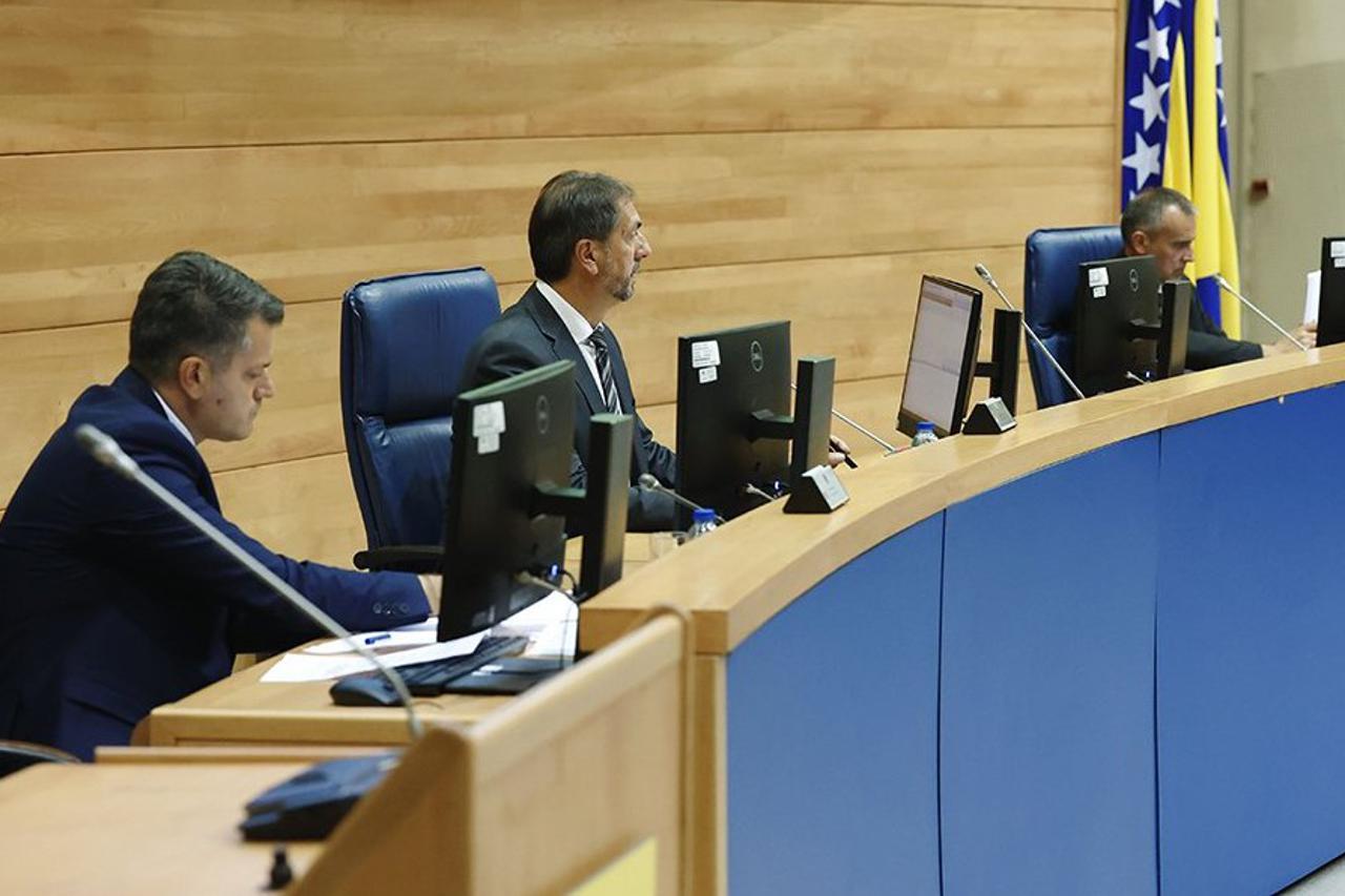 Mia Karamehić Abazović (Narod i pravda) upozorila je kako je neprihvatljivo da se zastupnici stalno dovode u situaciju da raspravljaju o dokumentima bez nazočnosti predlagača. Smatra da povjerenstva Doma nemaju kapacitet sama korigirati proračun bez suradnje Ministarstva financija. Istodobno, Nebojša Radmanović iz SNSD-a rekao je da su i Predsjedništvo i Vijeće ministara zakasnili s dostavljanjem prijedloga i da je slanje istog dokumenta "omalovažavanje Doma". Nazvao ga je "neprimjenjivim i neustavnim proračunom". Nakon stranke zastupnici su glasovali o tome hoće li uopće raspravljati o prijedlogu zakona bez predstavnika predlagača. Od 37 nazočnih, 22 su bila "za", 12 "protiv" i tri suzdržana, ali nije postignuta entitetska većina. Proračun institucija nije zbog toga usvojen ni jučer na hitnoj sjednici Zastupničkog doma Parlamentarne skupštine Bosne i Hercegovine, a jedino o čemu su raspravljali zastupnici bila je hitna procedura.