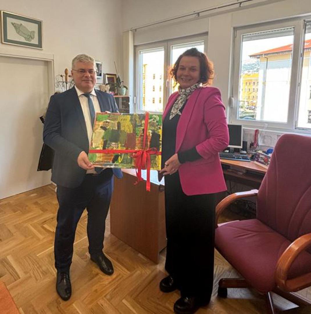 Predsjednik Uprave HT Eroneta dr. Goran Kraljević sa suradnicima iz Odjela za korporativne komunikacije posjetio je danas Osnovnu školu za djecu s posebnim potrebama u Mostaru. Tom prigodom ravnateljici Maji Mustapić uručio je dar – TV uređaj za nastavne aktivnosti, a svim učenicima – blagdanske paketiće. Kraljević je potom u društvu ravnateljice obišao školu, posebno se zanimajući za rad senzorne sobe, ali i radionica u kojima su mu učenici pokazali što kreiraju i pripremaju za Božić i Novu godinu.