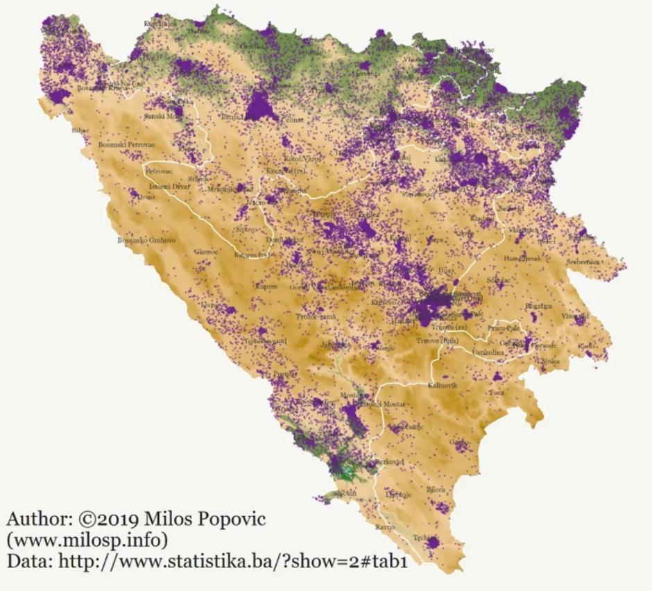 Analiza karte naseljenosti BiH koju je objavio istraživač Miloš Popović