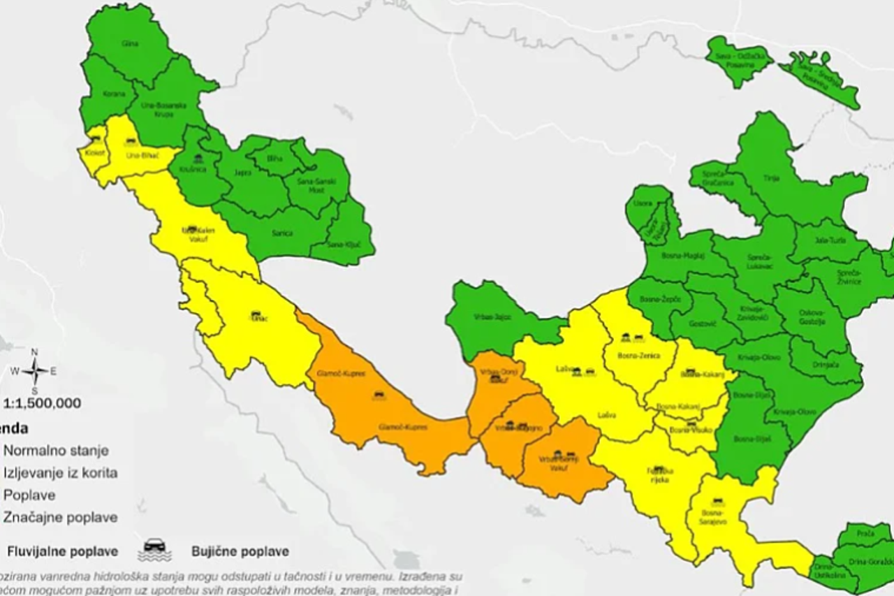 „Nadamo se da se scene kao iz listopada prošle godine neće ponoviti, ali preventivno upozoravamo stanovništvo sjeverne Hercegovine i dijelom Srednje Bosne da bude na oprezu“, priopćeno je na Facebook stranici BHMETEO.ba.