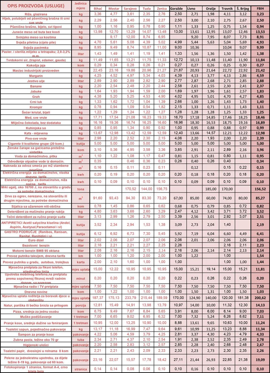 Evo kakve su, u pet gradova FBiH, prosječne cijene hrane, lijekova i nekih usluga iz svibnja 2021. godine koje je objavio Federalni zavod za statistiku.