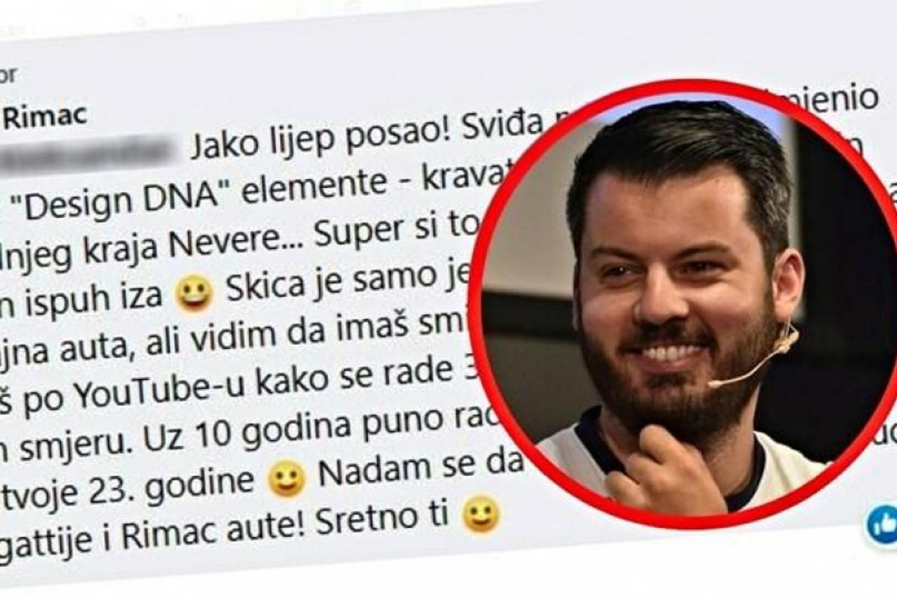 "Predlažem da malo vidiš po YouTubeu kako se rade 3D modeli i da se educiraš u tom smjeru. Uz 10 godina puno rada i truda, možeš biti dizajner do svoje 23. godine. Nadam se da ćeš onda dizajnirati buduće Bugattije i Rimac aute! Sretno ti", napisao je Mate.