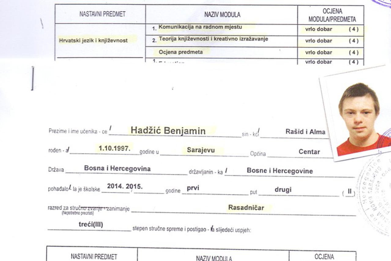 Osamnaestogodišnji dječak s Downovim sindromom Benjamin Hadžić iz Sarajeva, o kojemu smo pisali u nekoliko navrata, završio je srednju školu za okoliš i drvni dizajn u Sarajevu, i to s odličnim uspjehom, stekavši tako zvanje rasadničara, pohvalio nam se njegov otac, doktor građevine Rašid Hadžić.
