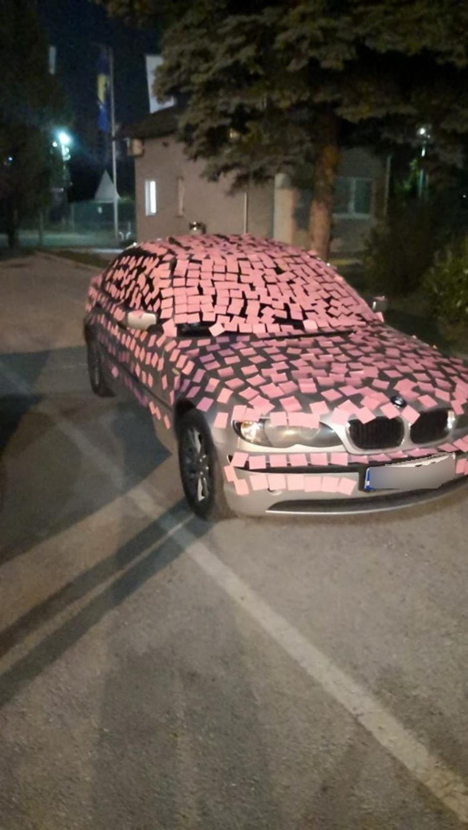 Njegov sivi BMW brzo je postao roze boje. Naljepnice su se nalazile preko cijelog automobila, a na svakoj od njih je stajala neka ljubavna poruka. Ova priča ima lijep kraj, jer je cijeli koncept urodio plodom, pa iako su muškarci osjetljivi na svoje limene ljubimce, ovaj dečko se nije naljutio na svoju djevojku nego se pomirio s njom.