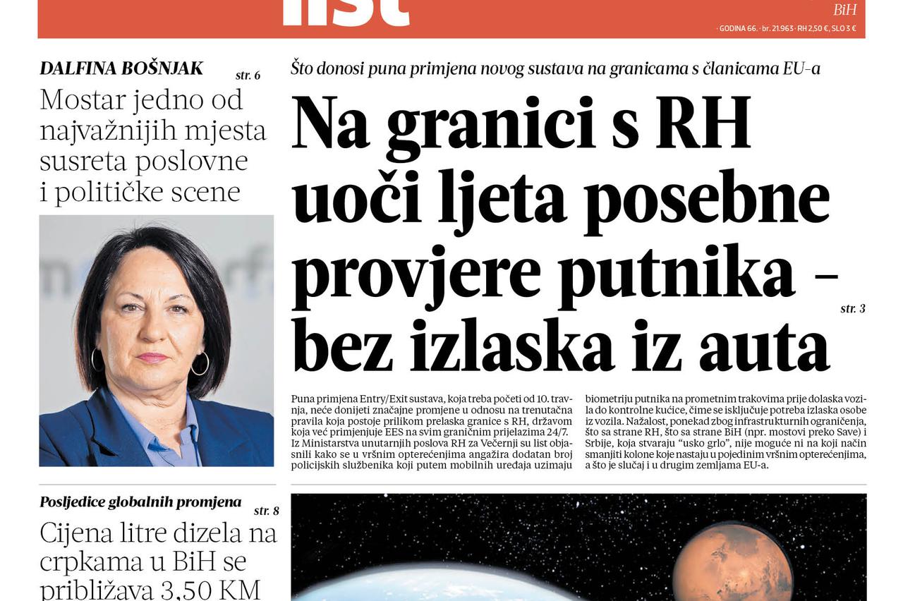 Srijeda 18. ožujka 2026. godine Pogledajte što Večernji list BiH donosi ove srijede: Priče o provjerama putnika na granici, pojavi zarazne bolest, cijenama...