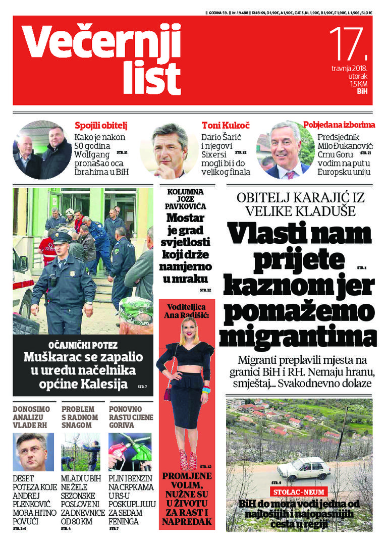 U Večernjem listu BiH u tiskanom izdanju u utorak, 17. travnja 2018. godine čitajte: