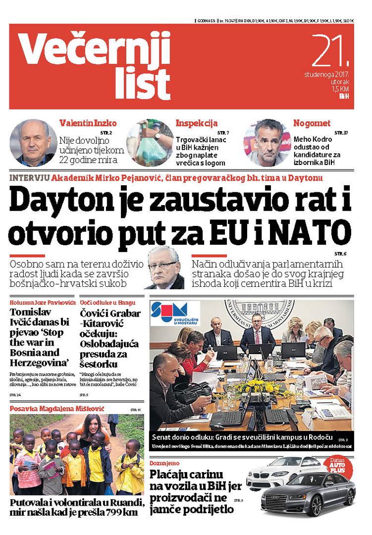 U Večernjem listu BiH, u tiskanom izdanju u utorak 21. studenog 2017. godine čitajte: