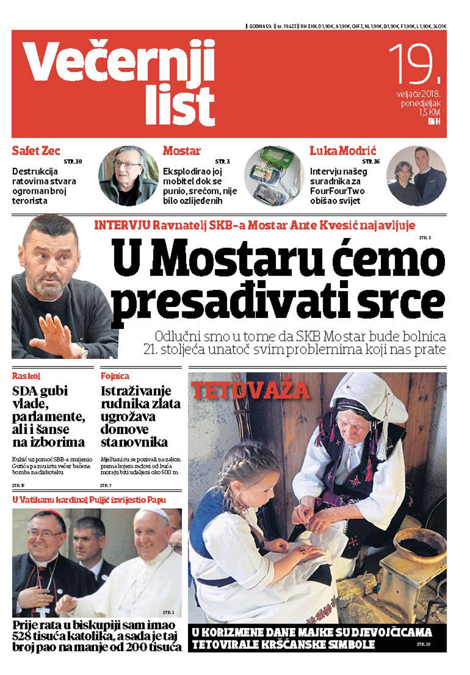 U Večernjem listu BiH u tiskanom izdanju u ponedjeljak, 19. veljače 2018. godine čitajte:
