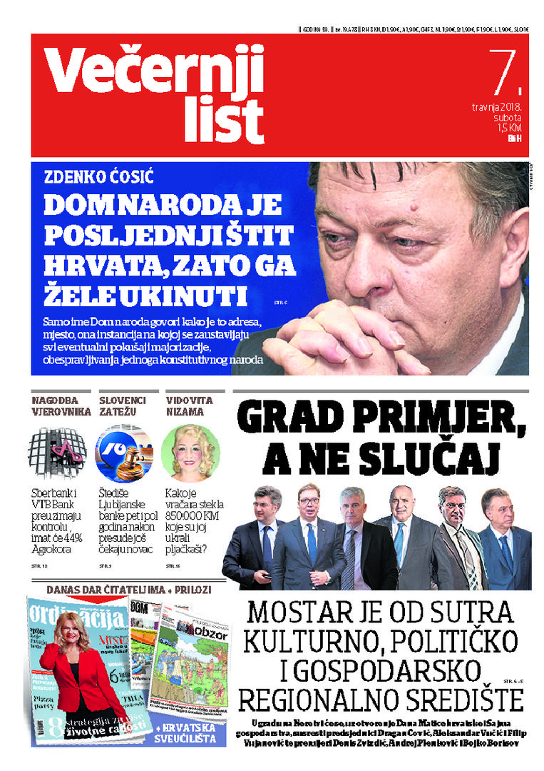 U Večernjem listu BiH u tiskanom izdanju u subotu, 7. travnja 2018. godine čitajte: