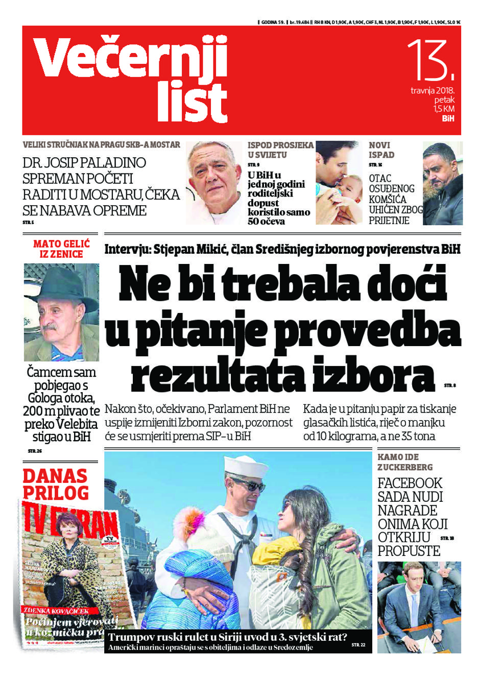 U Večernjem listu BiH u tiskanom izdanju u petak, 13. travnja 2018. godine čitajte: