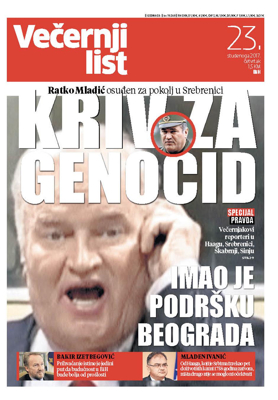 U Večernjem listu BiH, u tiskanom izdanju u četvrtak 23. studenog 2017. godine čitajte: