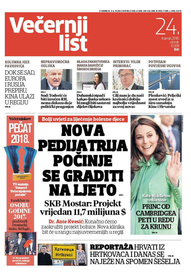 U Večernjem listu BiH u tiskanom izdanju u utorak, 24. travnja 2018. godine čitajte: