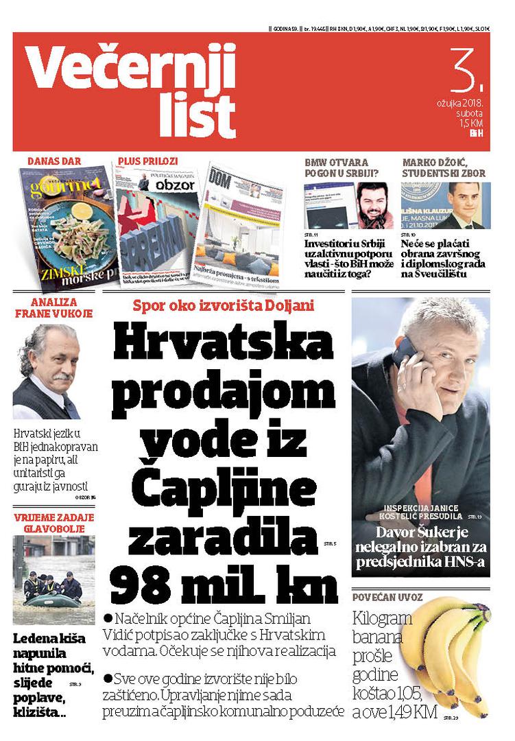 U Večernjem listu BiH u tiskanom izdanju u subotu, 3. ožujka 2018. godine čitajte: