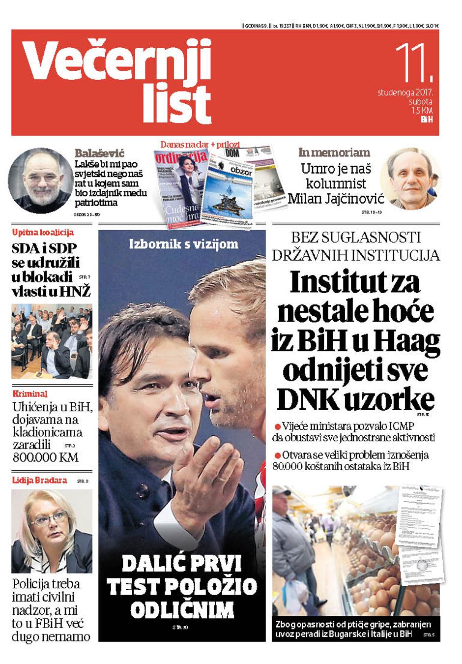 U Večernjem listu BiH, u tiskanom izdanju u subotu 11. studenog 2017. godine čitajte:
