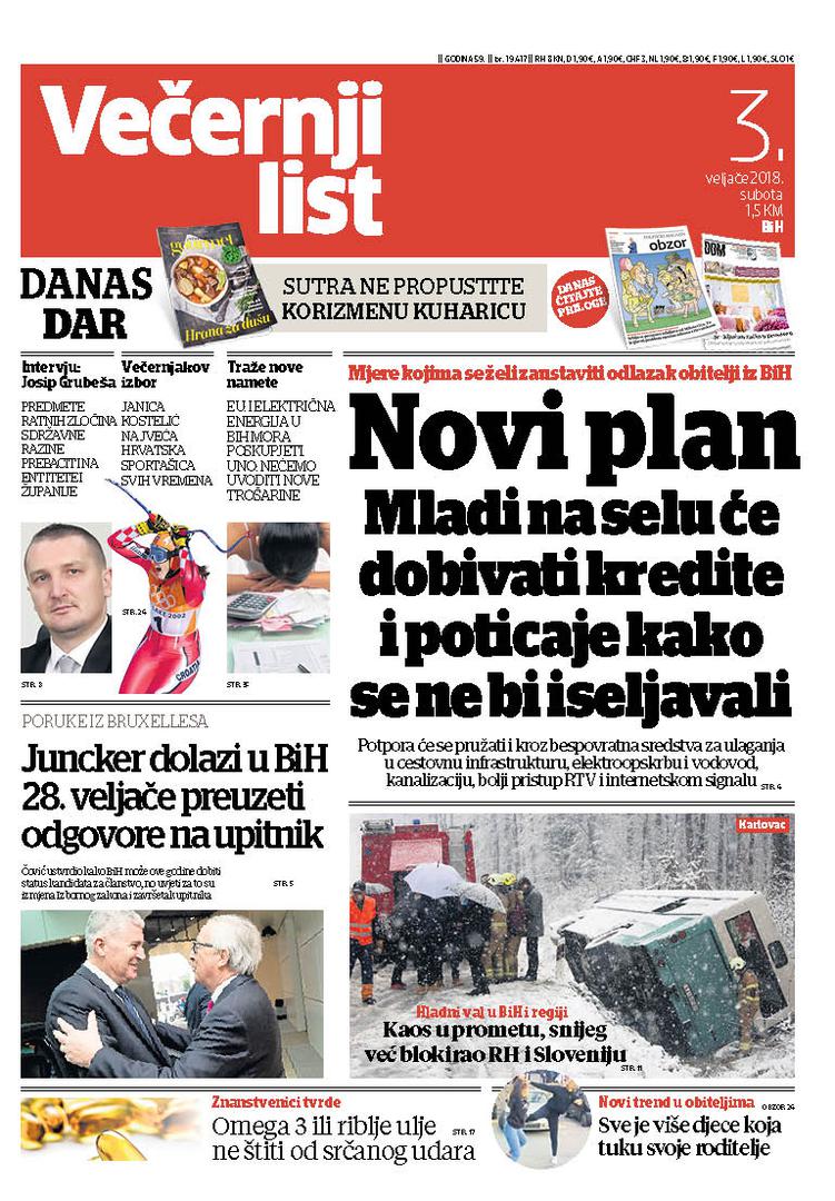 U Večernjem listu BiH u tiskanom izdanju u subotu, 03. veljače 2018. godine čitajte: