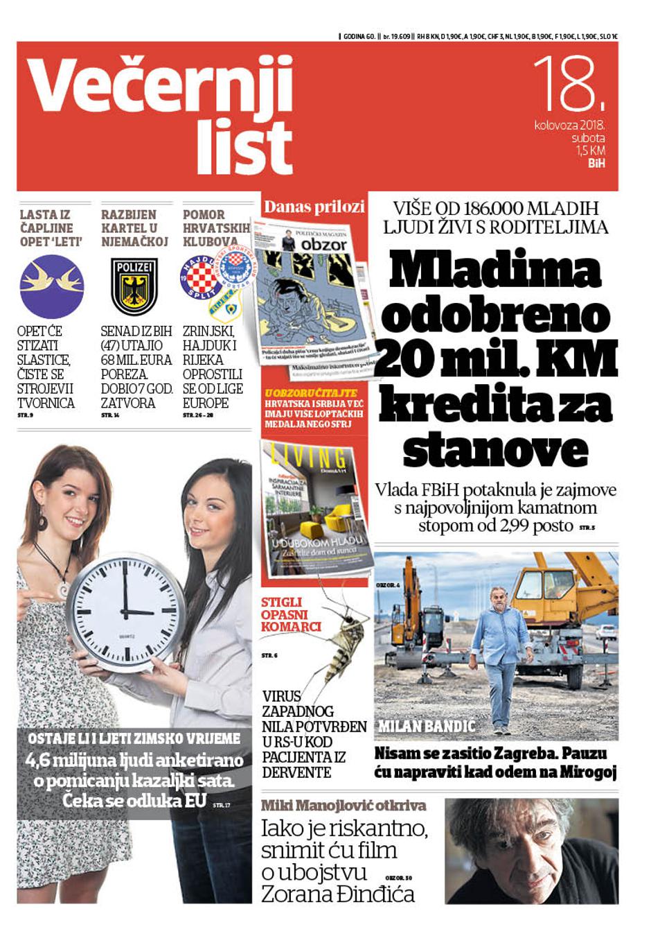 U Večernjem listu BiH u tiskanom izdanju u subotu, 18. kolovoza 2018. godine čitajte:
