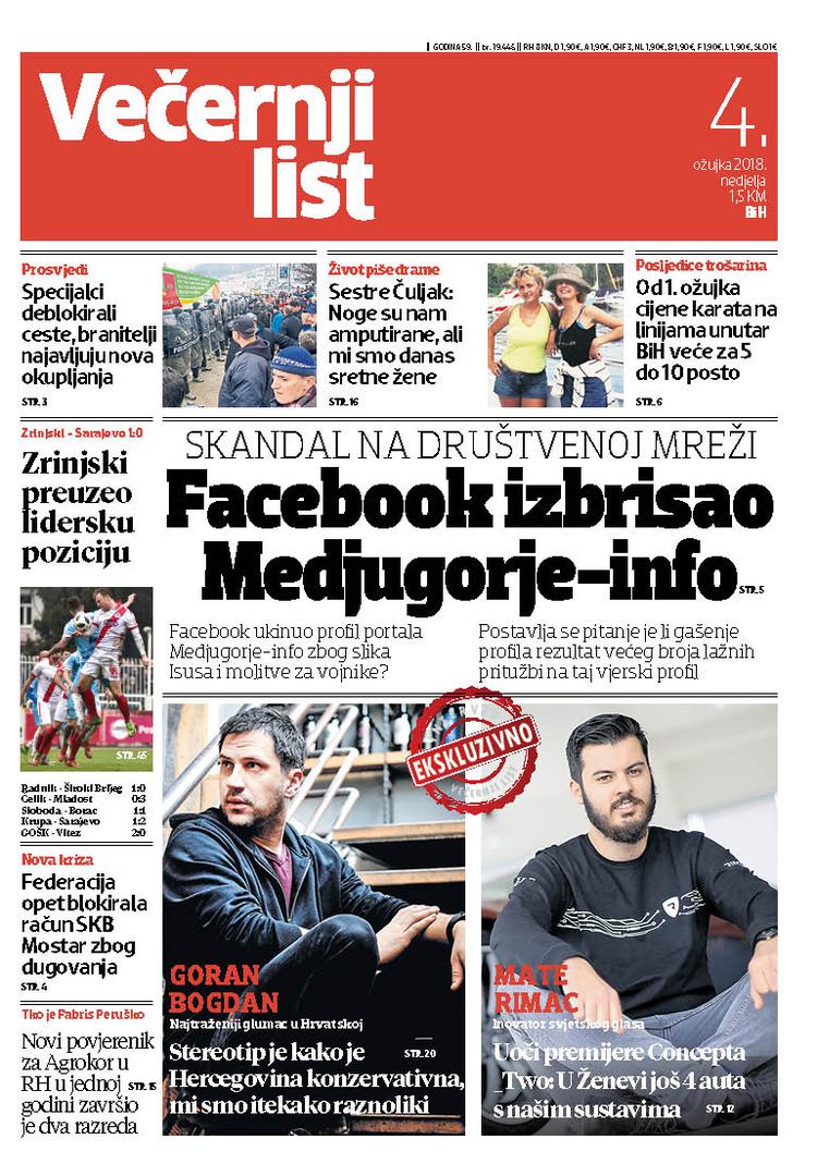 U Večernjem listu BiH u tiskanom izdanju u nedjelju, 4. ožujka 2018. godine čitajte:
