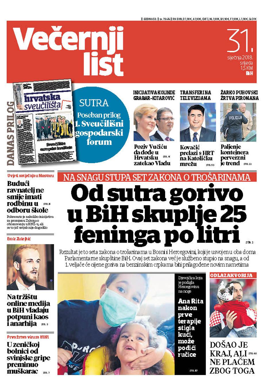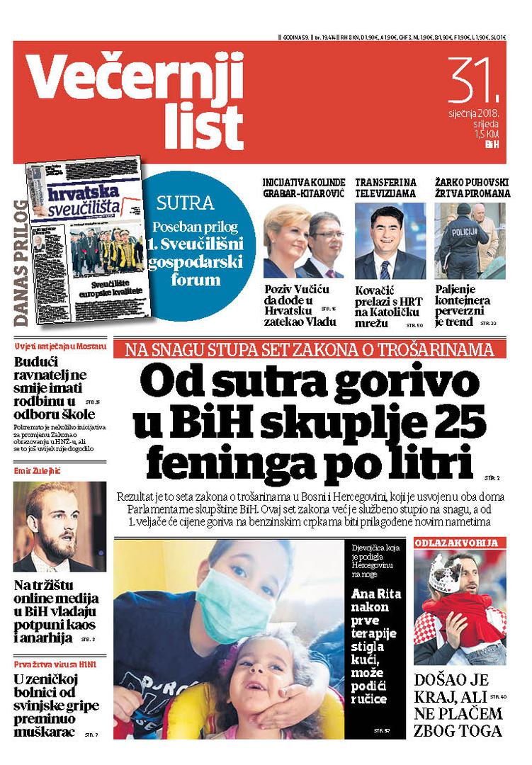 U Večernjem listu BiH u tiskanom izdanju u srijedu, 31. siječnja 2018. godine čitajte:
