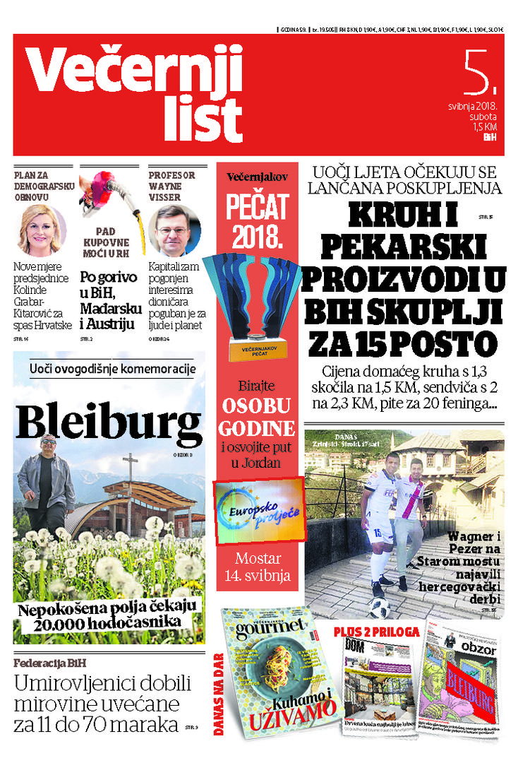 U Večernjem listu BiH u tiskanom izdanju u subotu, 5. svibnja čitajte: