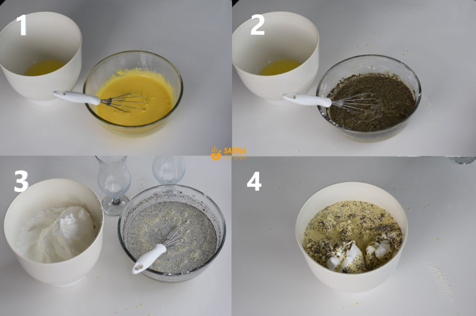 6. U smjesu sada dodajte postupno (na dva puta uz miješanje) plavi mljeveni mak.