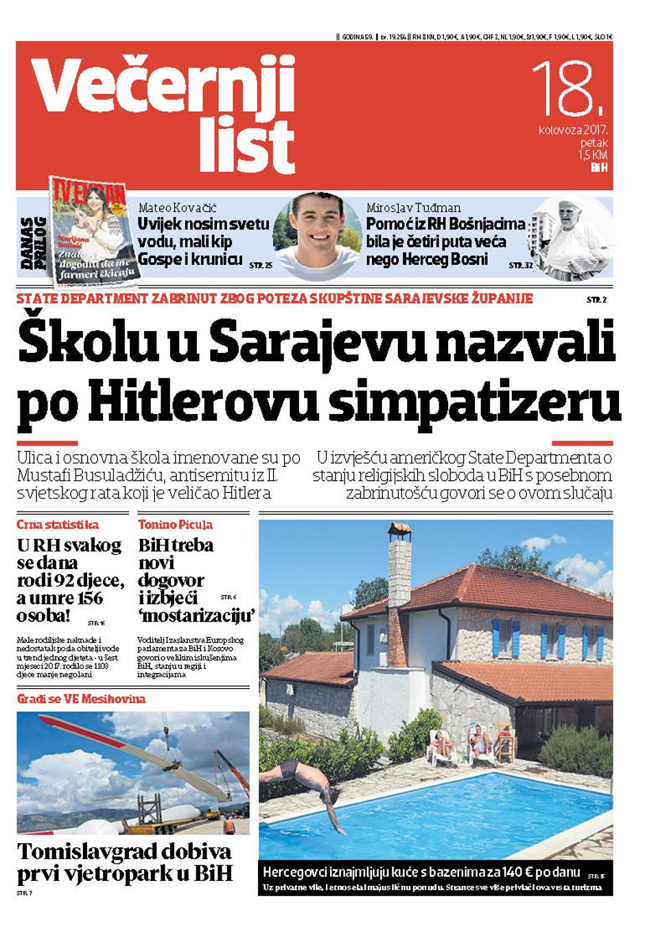 U Večernjem listu BiH, u tiskanom izdanju u petak 18. kolovoza 2017. godine čitajte: