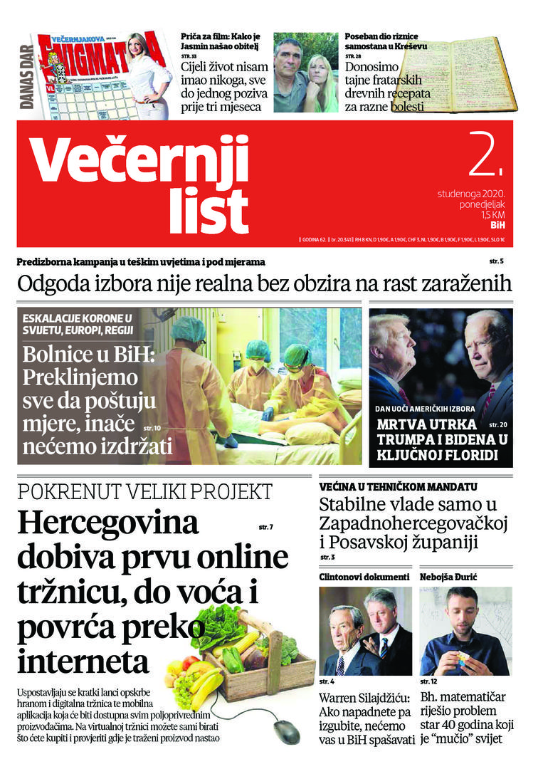 TISKANO IZDANJE, 2. STUDENOGA 2020.