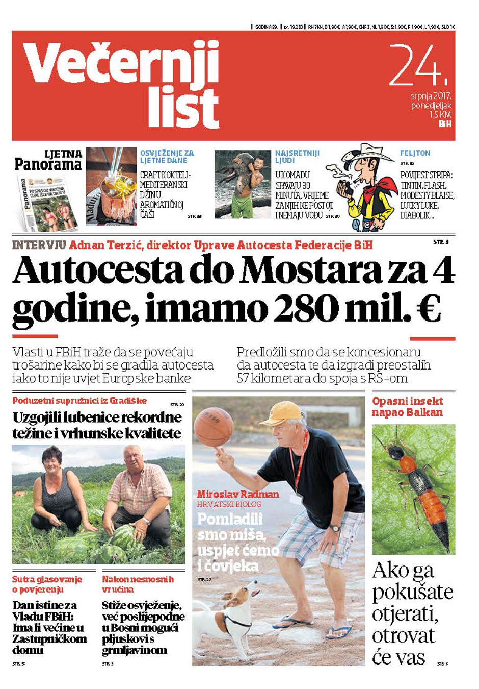 U Večernjem listu BiH, u tiskanom izdanju u ponedjeljak, 24. srpnja 2017. godine čitajte: