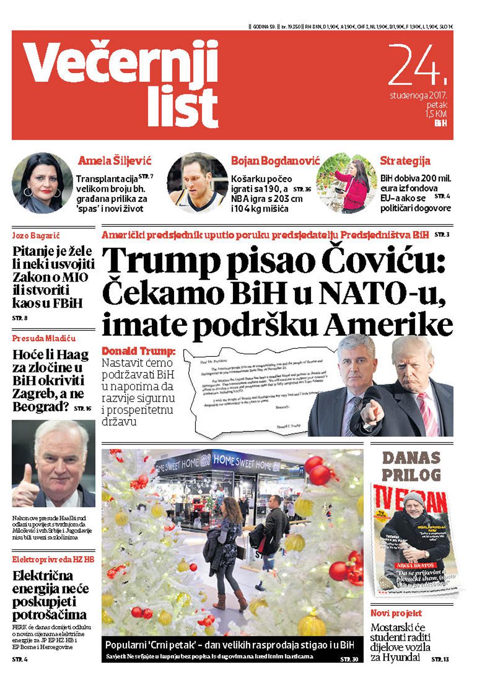 U Večernjem listu BiH, u tiskanom izdanju u petak 24. studenog 2017. godine čitajte: