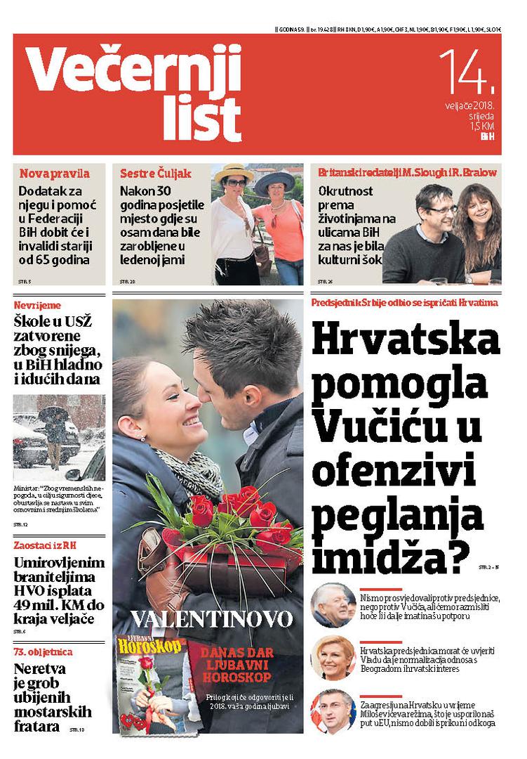 U Večernjem listu BiH u tiskanom izdanju u srijedu, 14. veljače 2018. godine čitajte: