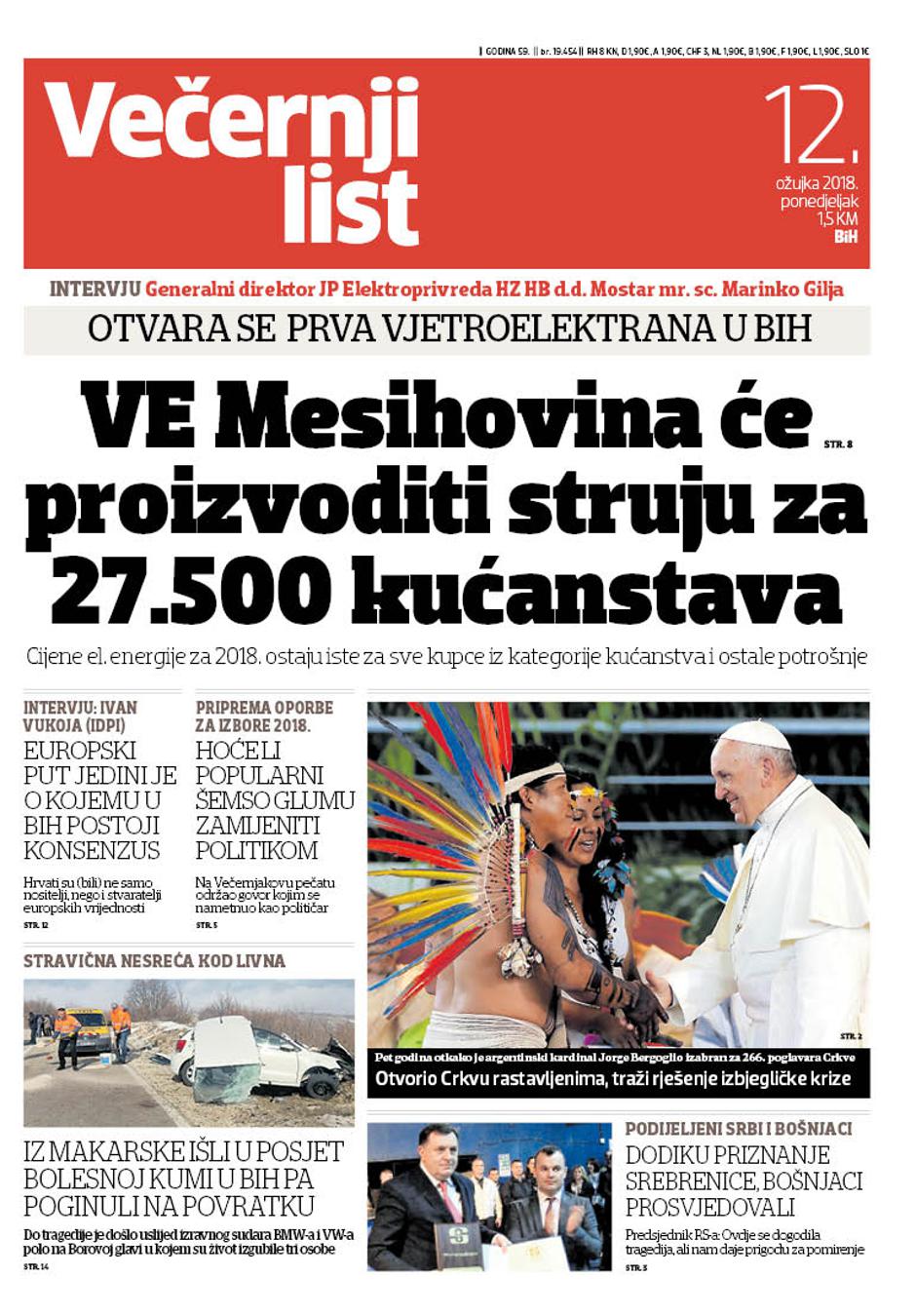 U Večernjem listu BiH u tiskanom izdanju u ponedjeljak, 12. ožujka 2018. godine čitajte: