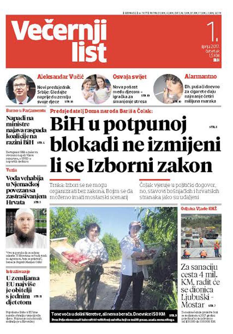 U tiskanom izdanju Večernjeg lista BiH, ovog četvrtka, 1. lipnja 2017. godine, čitajte: