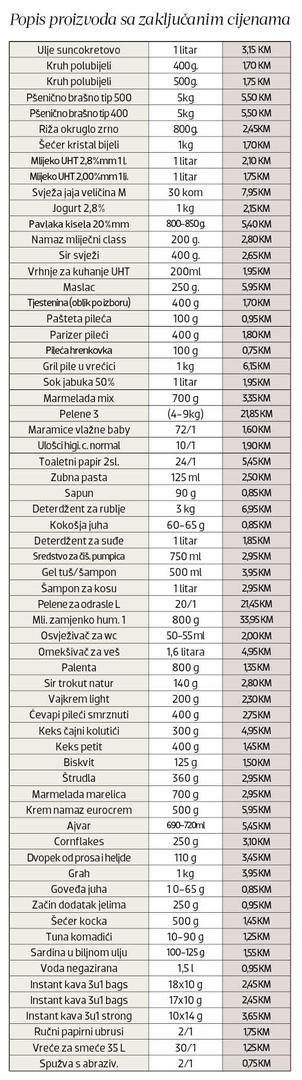 Od hrane pa do osnovnih higijenskih potrepština - kupce u Federaciji očekuju nove, snižene i zaključane cijene uz koje bi, procjene su, mogli uštedjeti oko 60 maraka po košarici.