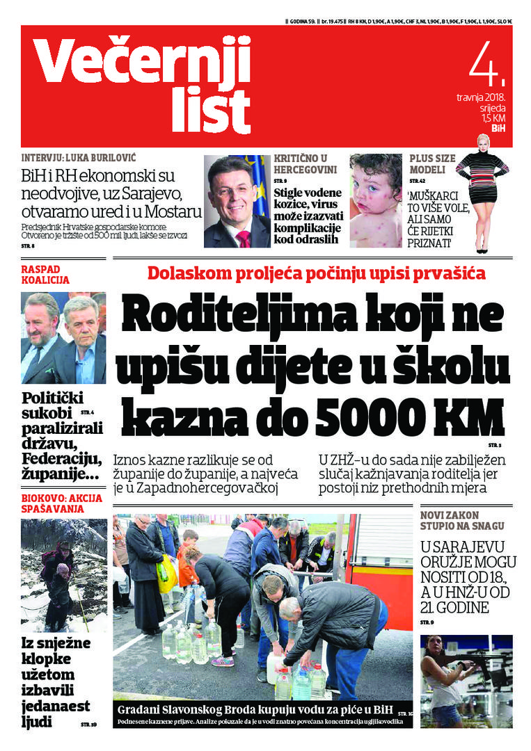 U Večernjem listu BiH u tiskanom izdanju u srijedu, 4. travnja 2018. godine čitajte: