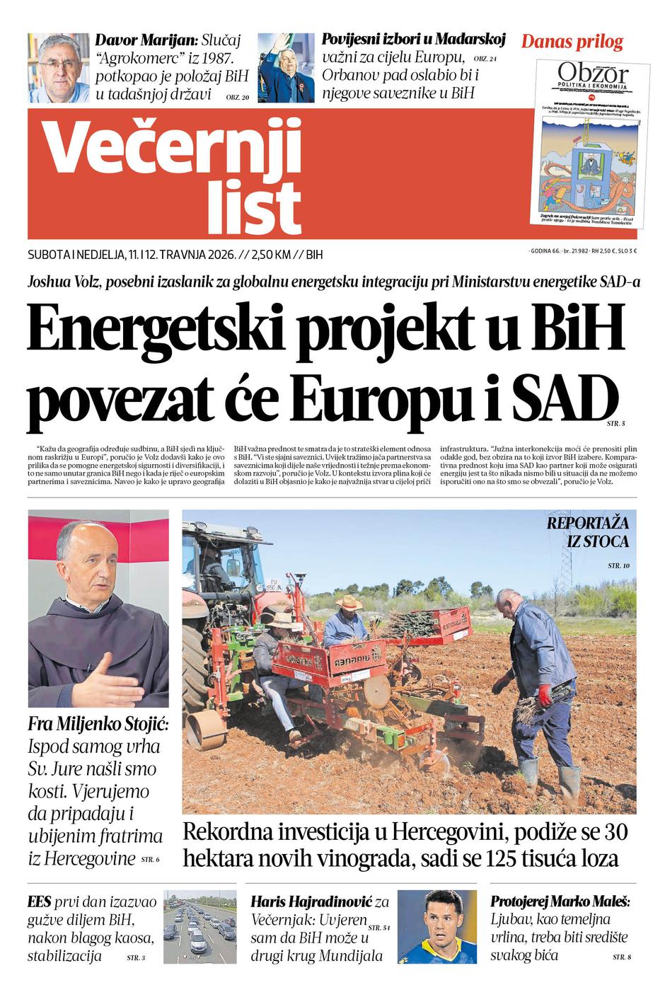 Ne propustite ni ovog vikenda veliki dvobroj Večernjeg lista BiH za subotu i nedjelju, 11. i 12. travnja. Osim brojnih aktualnih tema, analiza i intervjua te reportaža, tiskano izdanje donosi i bogati magazin Obzor.