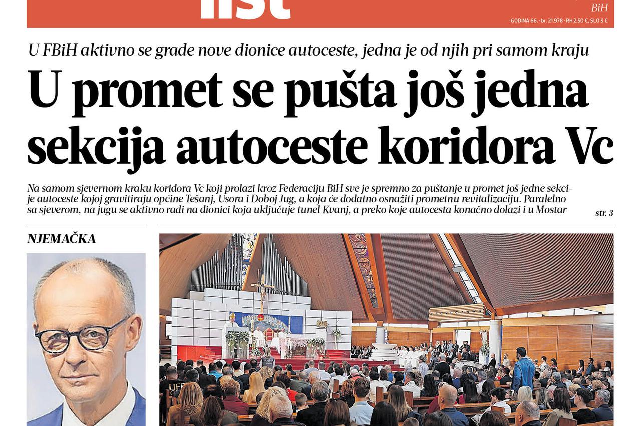 Tiskano izdanje, 7. travnja Ne propustite Večernji list BiH ni ovog utorka: nove dionice autoceste, kolike su plaće za sezonce, uspjeh ljubuškog rukometa...
