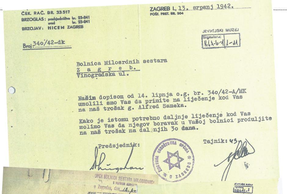– Na primjer, jedan je čovjek bio ondje pune tri godine! Zvao se Leo Braff i bio je, zapravo, Nijemac koji je iz Njemačke pobjegao u Kraljevinu Jugoslaviju i onda je 1942. posredstvom Židovske općine Zagreb došao u bolnicu. Naime, Židovska općina Zagreb imala je dogovor s nadbiskupom Stepincem da svakoga koga oni preporuče bolnica primi na liječenje. Tako se Leo Braff tri godine skrivao u bolnici i preživio rat. Na popisu preživjelih Židova u Zagrebu nalazi se i njegovo ime – kaže Danon pokazujući kopiju bolničke dokumentacije za pojedine pacijente koja uključuje pismo Židovske općine, potvrde o smještaju u bolnicu te potvrde o uplati bolničkih troškova.