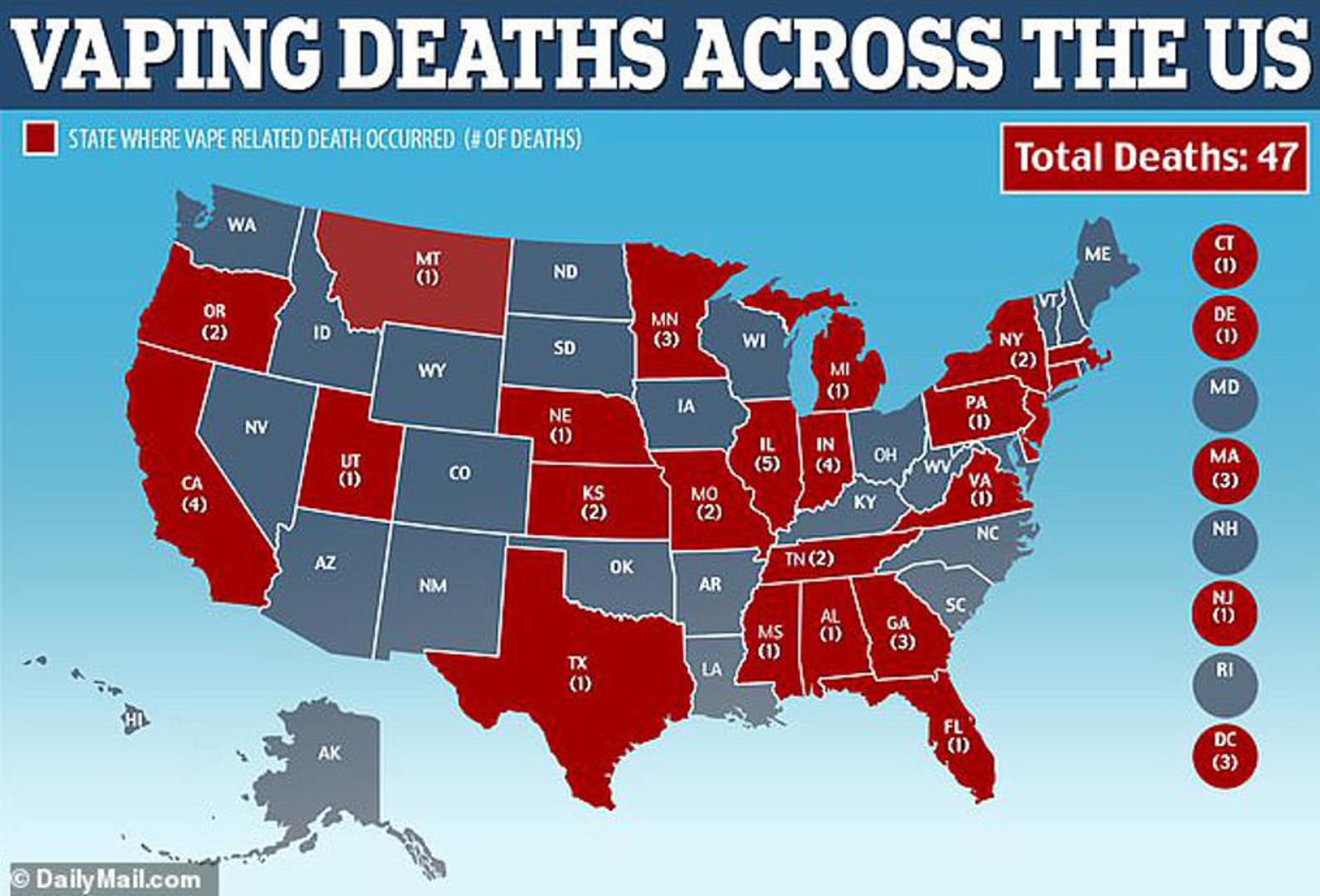Uređaj za pušenje bez nikotina ubio je 47 osoba diljem Amerike prema novim podacima Centra za kontroliranje i prevenciju bolesti.