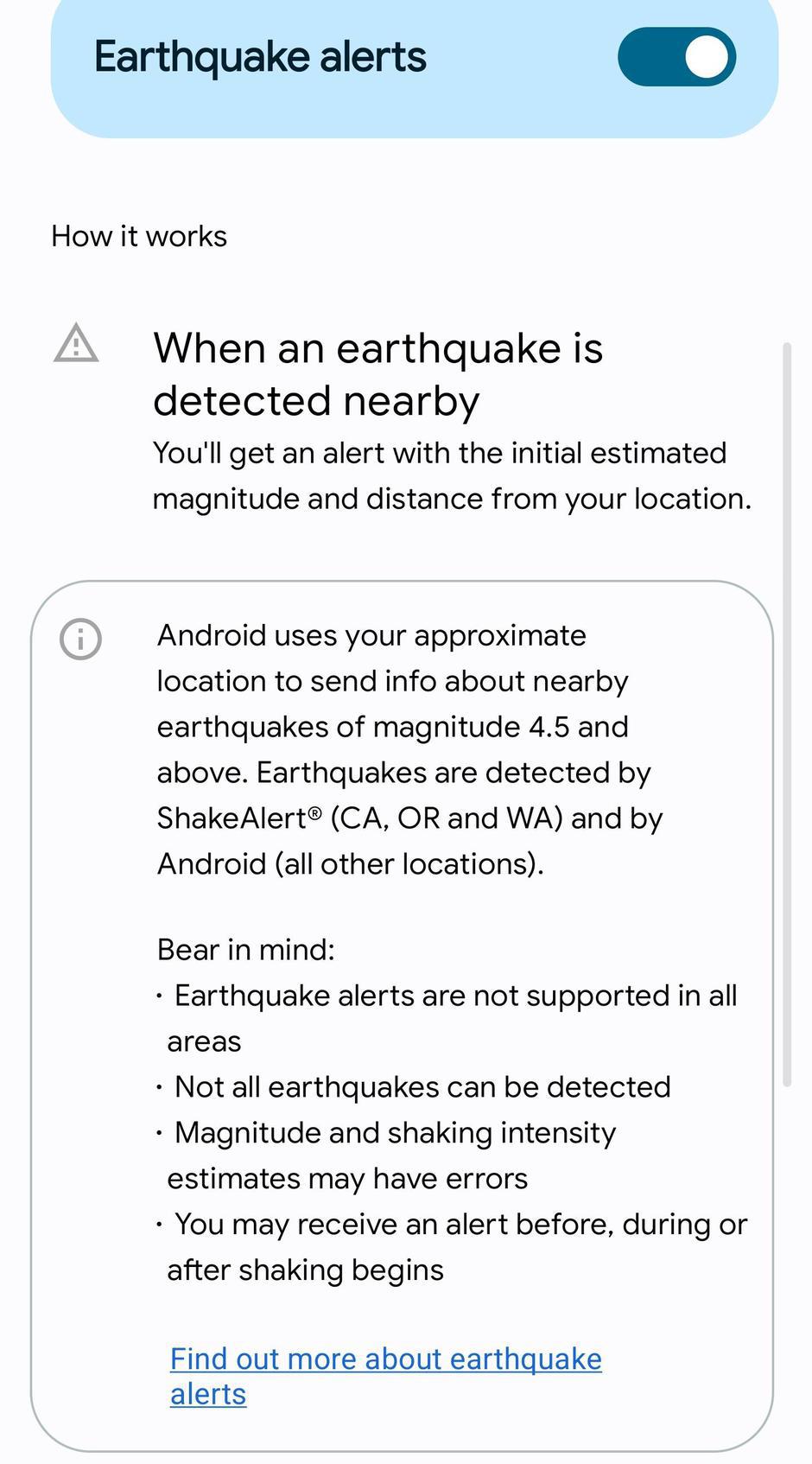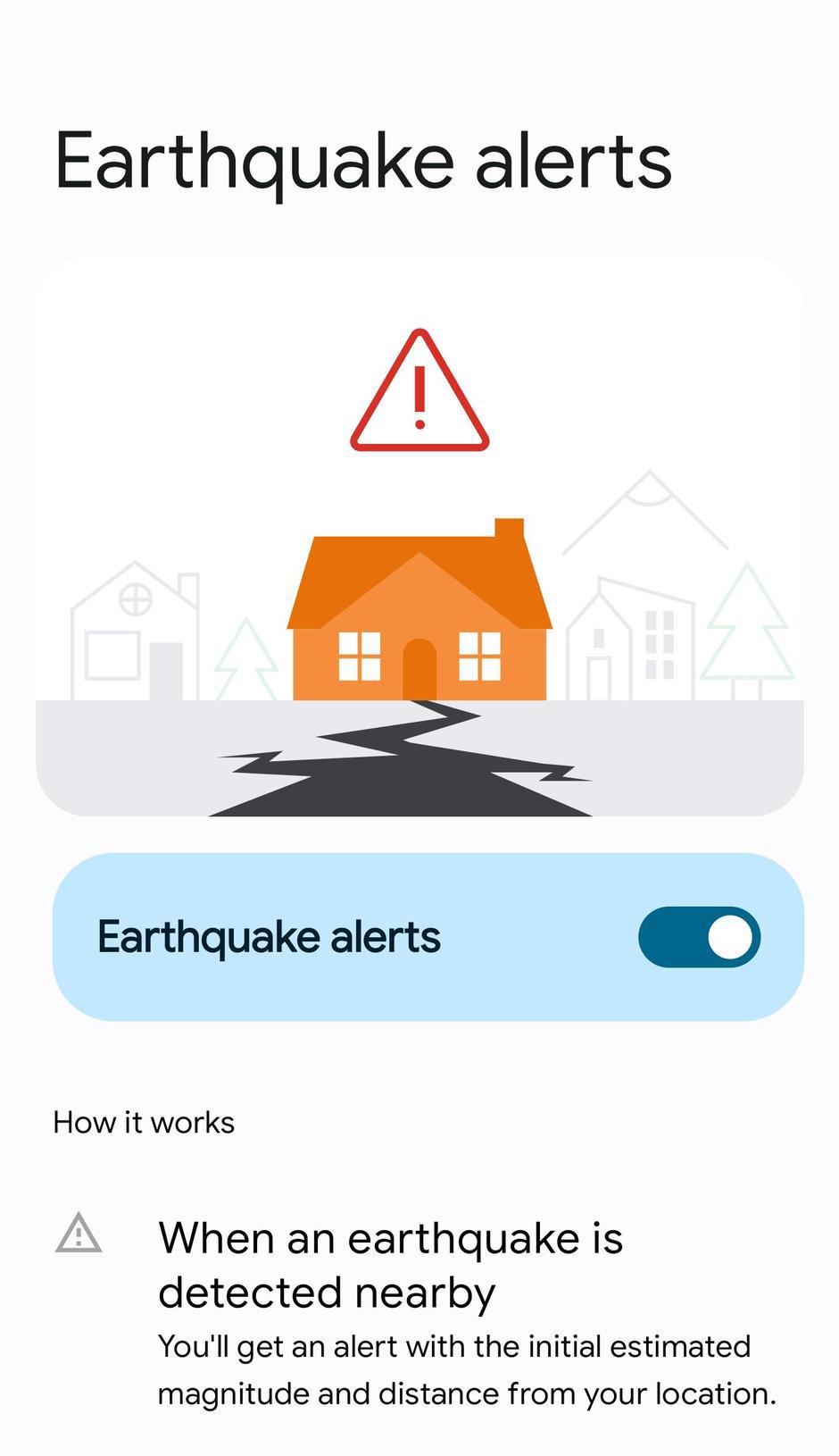 Naime, svi noviji pametni telefoni dolaze sa sićušnim akcelerometrima, za koje su Googleovi inženjeri tvrdili da mogu osjetiti signale koji pokazuju da bi se mogao dogoditi potres. Ako telefon otkrije te signale, šalje upozorenje Googleovom poslužitelju za otkrivanje potresa, zajedno s približnom lokacijom potresa. Poslužitelj zatim kombinira informacije s mnogih obližnjih telefona kako bi otkrio hoće li se potres stvarno dogoditi.