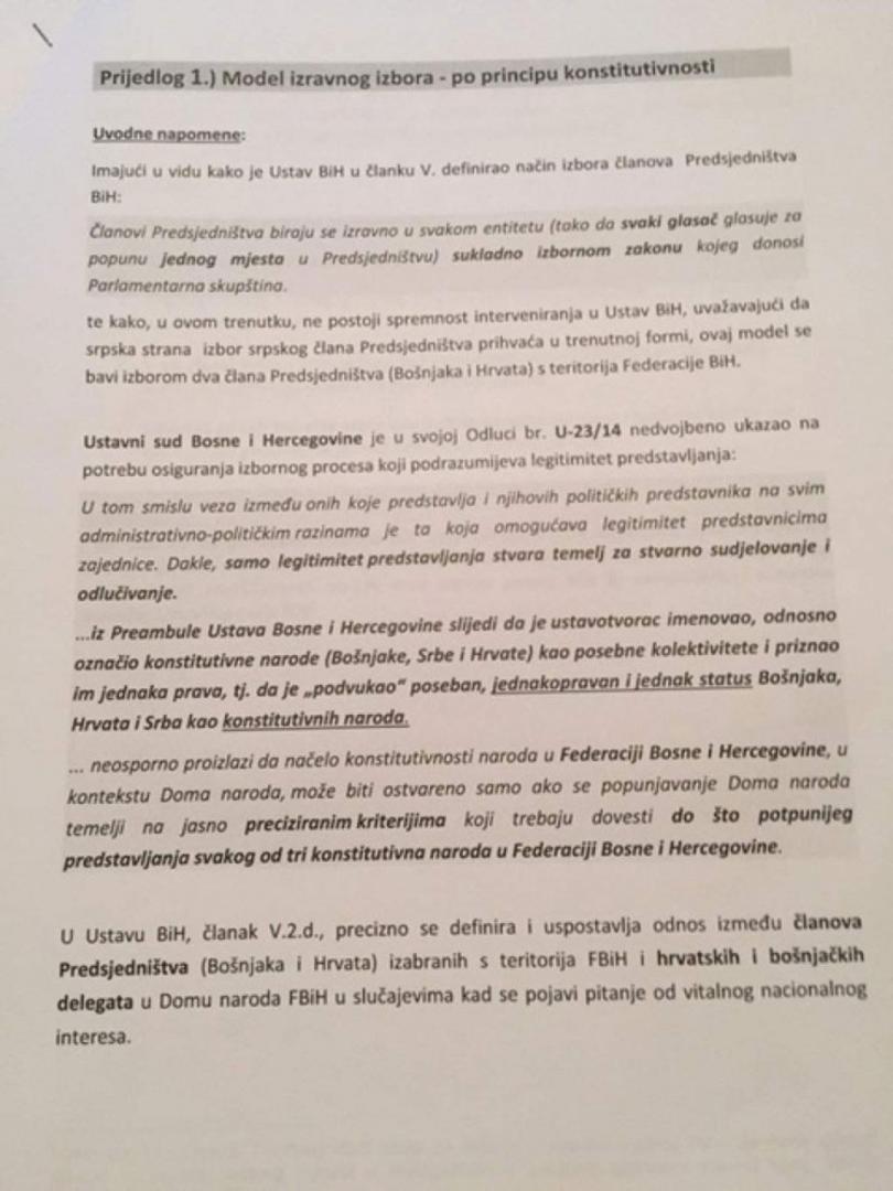 “To su prijedlozi koje smo uradili u situaciji kada ne možemo promijeniti Ustav. Evo, ostavimo prostora, pa neka se ostali izjasne. Mislim da nema razloga da ovako nešto ne bude prihvatljivo za sve u BiH”, ističe Krišto. Dodaje kako je u pitanju radni materijal i da svatko ima pravo na svoj stav. “Moramo tražiti rješenja, a ne razloge koji ne stoje kako nešto ne bi bilo prihvatljivo”, zaključuje Krišto.