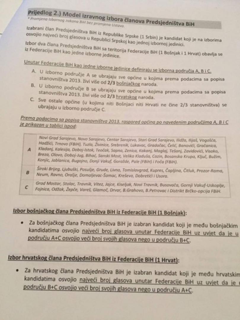 Prema tom dokumentu HDZ BiH predlaže tri modela izravnog izbora članova Predsjedništva po načelu konstitutivnosti, napominjući kako uvažavaju činjenicu da srpska strana izbor kolektivnog šefa države prihvaća u trenutnoj formi.